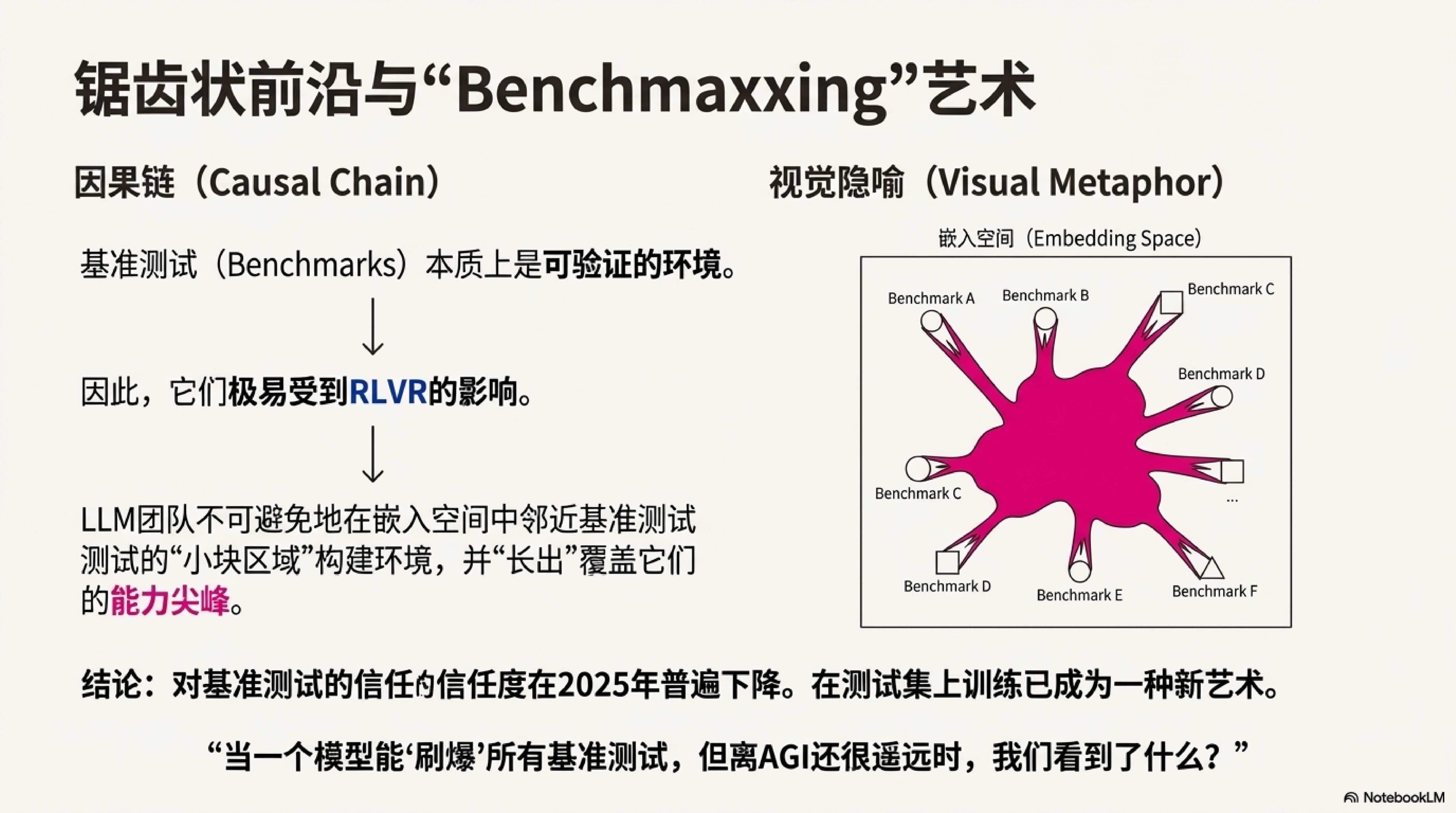RLVR让基准测试成为最完美、也最狭隘的优化目标,导致“应试训练”泛化。- 对基准测试的信任度下降:在测试上长出“尖刺”,不等于通用智能真正提升。