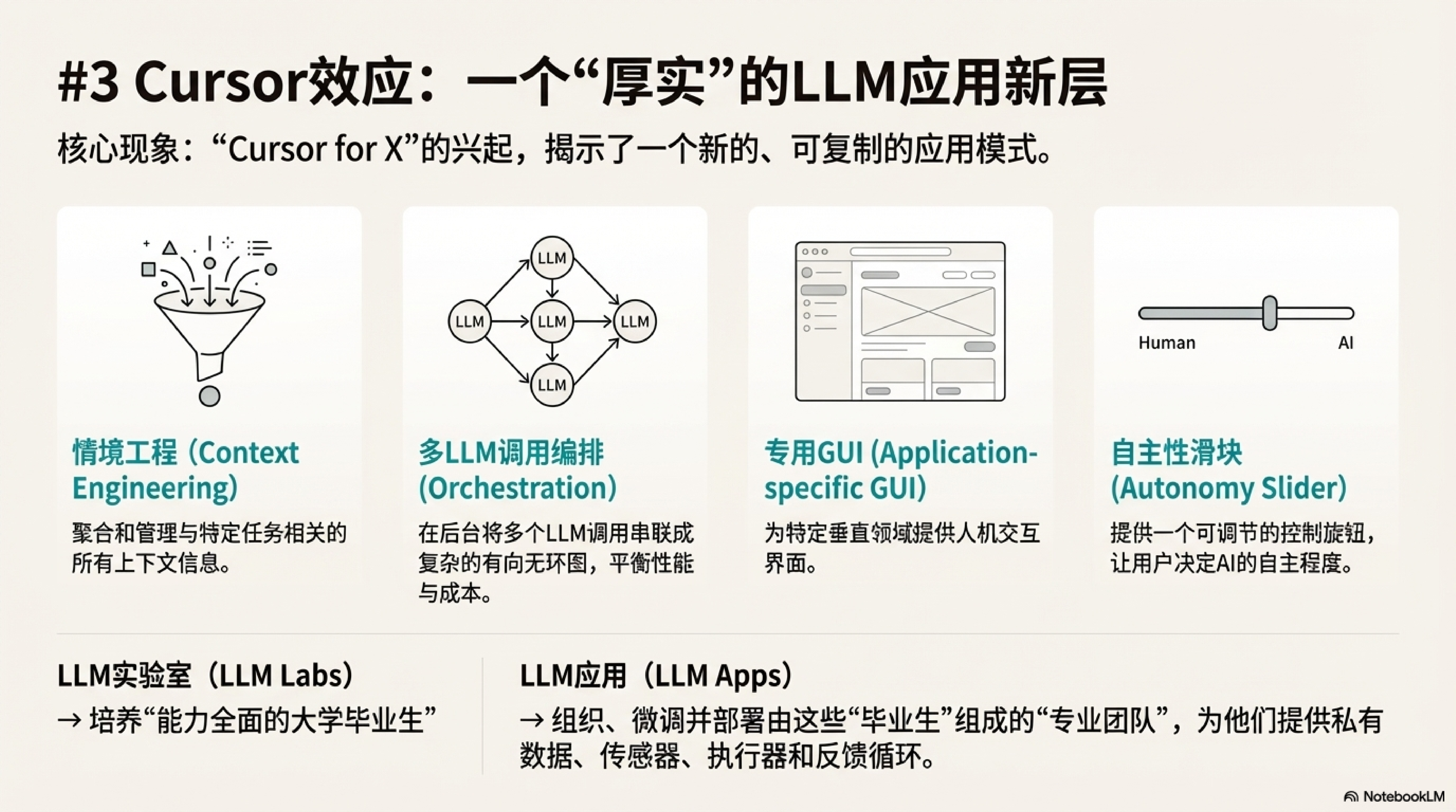 Cursor等应用将其组织成“专业团 队”,结合私有数据与工具形成差异化价值。