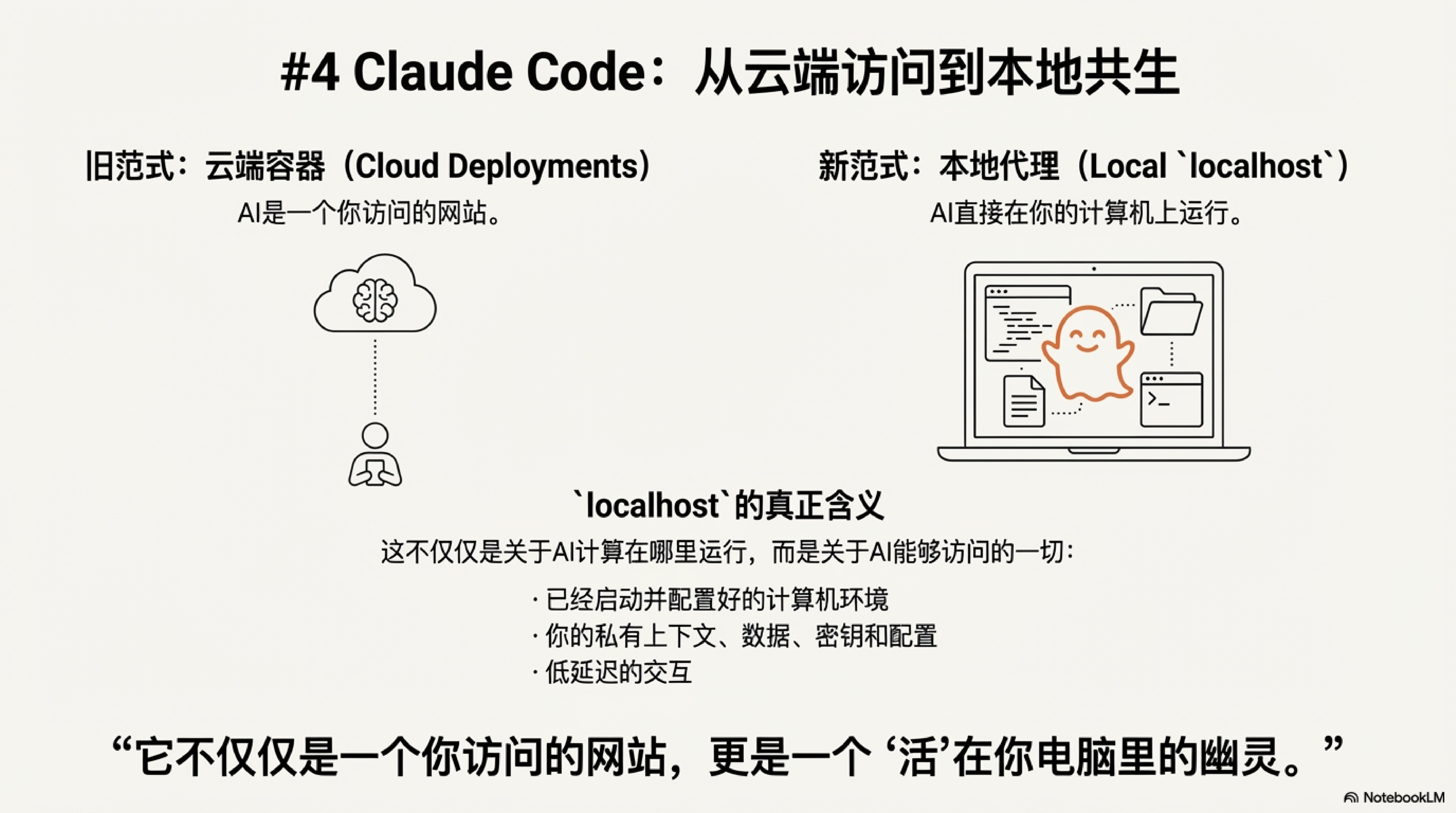 Claude Code被视为首个令人信服的本地Agent范例。 - 与早期云端容器的智能体不同,它在